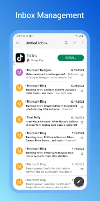 Meie rakenduse südames on kasutaja mugavus, kiirus ja turvalisus. Saate nautida reaalajas tõuketeavitusi igalt kontolt, millele saate määrata kohandatava "ära sega" perioodi, et tagada segamatu aeg. Leidke vajalikud kirjad hetkega tänu võimsale otsingufunktsioonile, mis kammib läbi nii kohalikke kui ka veebipõhiseid andmeid kuupäeva, saatja, teema või manuste alusel. Integreeritud kalender esitab teie ajakava selgelt loendi, päeva, nädala või kuu vaates ning mugavad avaekraani vidinad annavad kiire ülevaate nii meilidest kui ka kalendrisündmustest. Isikupärastage oma kasutajaliidest, e-posti signatuure ja pühkimistoiminguid, et kohandada rakendust täielikult oma vajadustele.