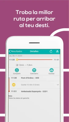 Säästa aega ja väldi ootamatusi, jälgides bussiliikluse täpseid väljumis- ja saabumisaegu. Süsteem võimaldab sul mugavalt soetada riiklike ühistranspordiliinide pileteid otse oma seadmest. Lisaks on Andorras elavatel inimestel nüüd lihtne võimalus oma tasuta abonementi digitaalselt rakendusega siduda, muutes igapäevased sõidud veelgi hõlpsamaks ja kättesaadavamaks. See tagab, et oled alati kursis ja saad oma teekondi planeerida maksimaalse efektiivsusega.
