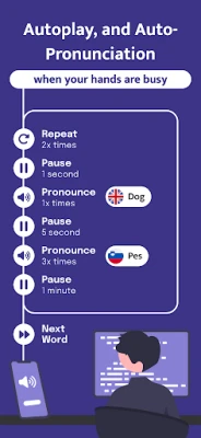 Õppige märkamatult, isegi kui teie käed on hõivatud või teil pole aega rakendust avada. Paindlikult ajastatud meeldetuletused toimetavad uusi teadmisi otse teie seadmesse, sh nutikella, hoides keele õppimise pidevalt fookuses. Kasutage ära iga hetke käed-vabad õppimisfunktsiooniga: interaktiivsed õppekaardid esitatakse automaatselt, pakkudes kohest hääldust ja kordust. See sobib suurepäraselt pendeldamiseks, treeninguks või muudeks olukordadeks, kus soovite oma aega produktiivselt kasutada ilma ekraani pidevalt jälgimata.
