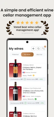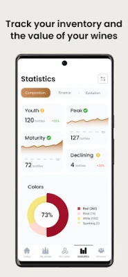 Kuid Oeni pole pelgalt hoiustamise tööriist; see on teie finantsassistent veinimaailmas. Teie veinikelder on väärtuslik vara ja Oeni annab teile kontrolli selle majandusliku potentsiaali üle. Saage igakuiseid ülevaateid oma kollektsiooni turuväärtusest, sest Oeni uuendab pidevalt iga pudeli hinda. Analüüsige oma veinidega seotud kulusid, jälgides neid kuude ja aastate lõikes, et hallata oma eelarvet arukamalt. Näete reaalajas oma investeeringute kasumit, aidates teil teha strateegilisi otsuseid ja maksimeerida oma veiniportfelli väärtust.