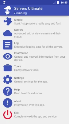 Kujutage ette, et juhite oma servereid otse nutiseadmest – see rakendus muudab selle reaalsuseks! Olgu teie eesmärgiks kiire ja lihtne seadistus "Lihtsa" vahekaardi abil või soovite sügavamat kontrolli kasutajate, lubatud IP-aadresside ja muu üle, pakub see platvorm piiramatuid võimalusi. Saate käivitada mitu serverit korraga, enamasti ilma juurjuurdepääsuta (välja arvatud teatud funktsioonid). Rohkem kui 60 serveritüübi ja 18 võrgutööriistaga, sealhulgas kaugligipääsu lahendused, on teil käeulatuses võimas tööriistakast igaks otstarbeks, alates NAS-serverist ja PHP-arendusest kuni hajusate võrkude haldamiseni.