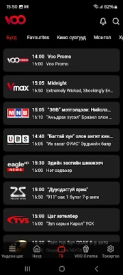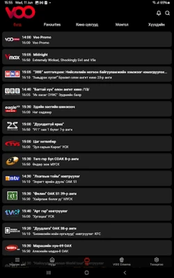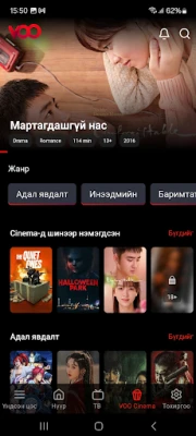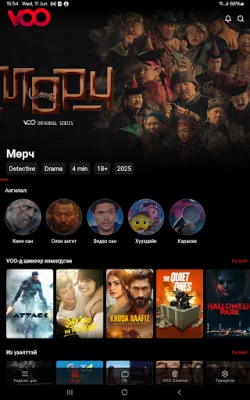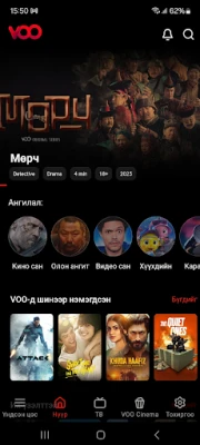 Avastage eksklusiivsed VOO originaalteosed – filmid ja sarjad, mida leiate ainult meie platvormilt. Lisaks pakub VOO laia valikut Mongoolia ja rahvusvahelisi filme ning telesaateid, mille vaatamise eest ei tule maksta ühtegi lisatasu. Kogu sisu on ametlikult litsentseeritud, tagades teile seadusliku ja kõrgekvaliteedilise meelelahutuse. Nautige tipptasemel telekanaleid kõrglahutuses ning saateid järelvaadata kuni 96 tundi tagasi, et te ei jääks kunagi ilma olulistest hetkedest.